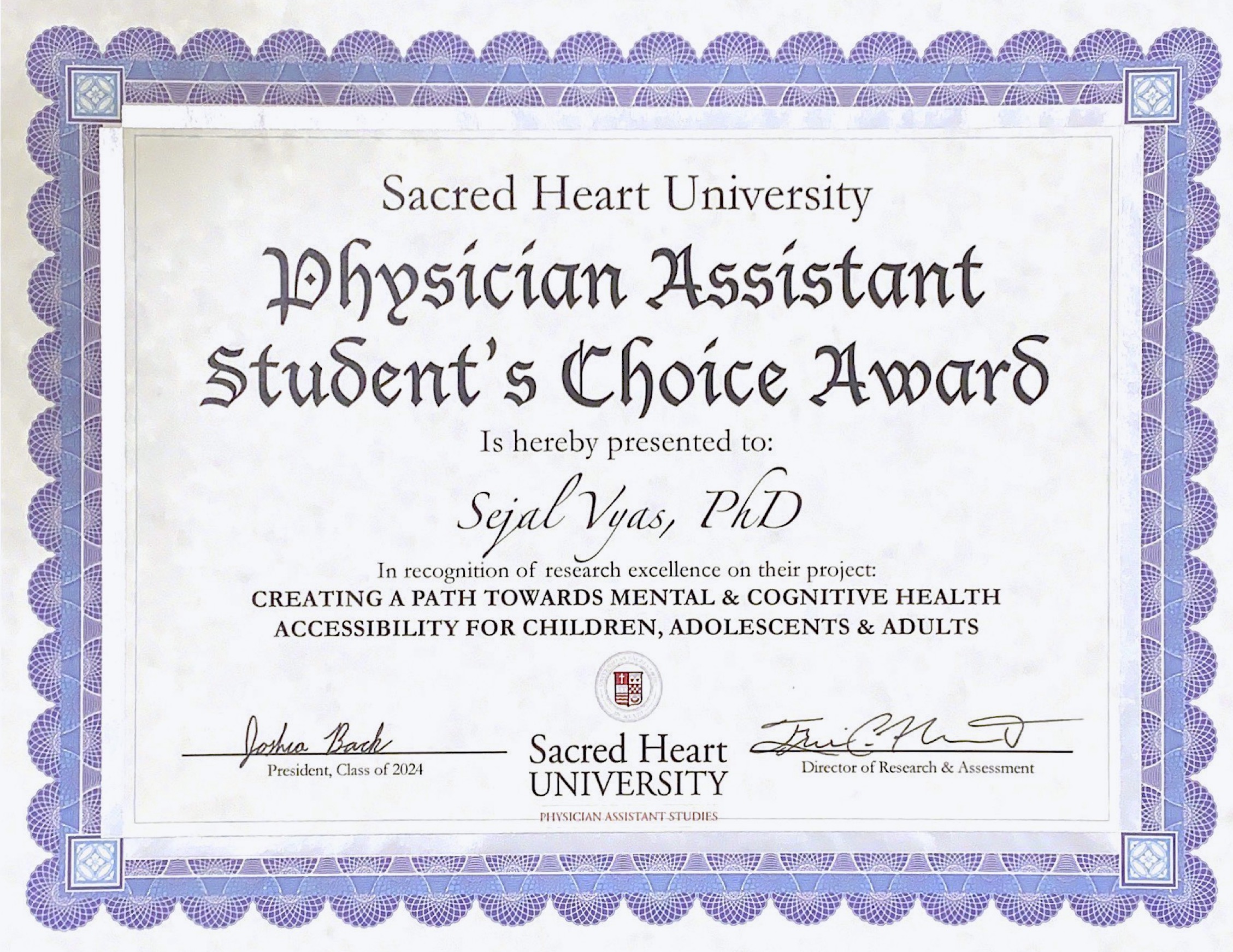 Vyas, S.K. Comprehensive Mental and Cognitive Health Screening. Poster Presentation, Stamford Hospital Research Day, May 2025.